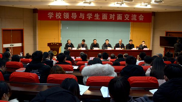 12月18日,我校舉辦學校領導與學生面對面交流會,圍繞學生關心、關注的焦點與重點問題展開交流,解答學生生活、學習與發展中的困惑與疑難問題,校黨委副書記彭虎軍出席,教務處、學生處、團委、保衛處、后勤保障處、圖書館負責人,各學院黨總支書記、學工辦主任、全體輔導員、學生代表參加會議。
