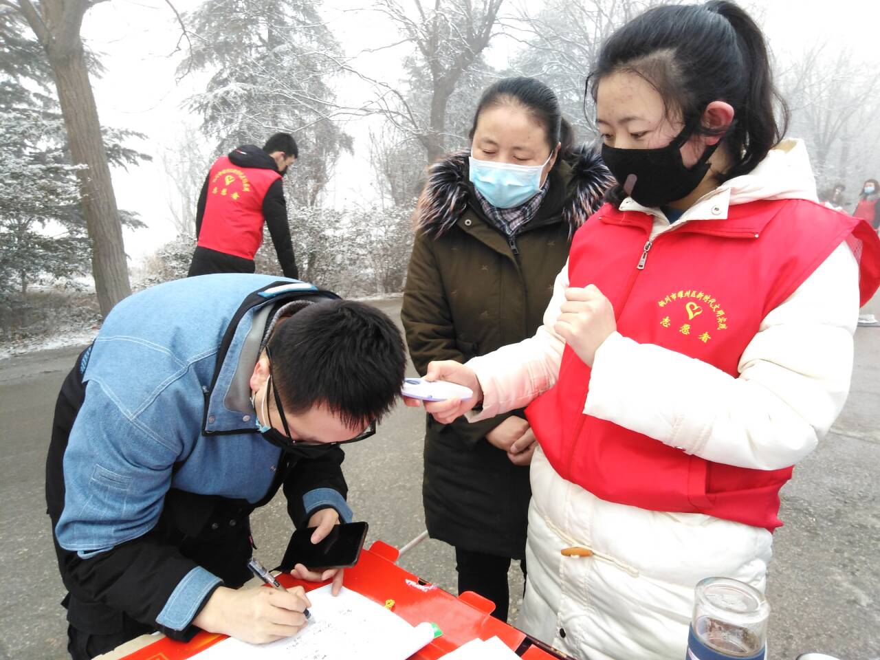 護理學專業2018級學生焦思娟看到無數醫護人員不顧自身安危搶救病患,看到村里的干部們不畏嚴寒24小時堅守在檢查崗位,深受感動的她毅然加入家鄉的志愿者隊伍,在銅川市耀州區孫塬鎮村口疫情防控檢查站勸返外省車輛、測量進村人員體溫,在村子里發放宣傳資料,幫助村委會工作人員整理外省返鄉人員檔案。她說自己做的事情雖然微不足道,但是感覺很充實,能為社會獻出自己的綿薄之力,是每個公民應盡的社會責任。