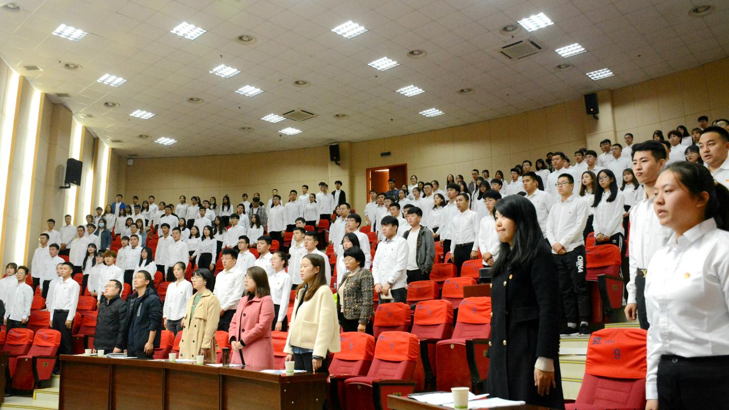 為進(jìn)一步推動(dòng)習(xí)近平新時(shí)代中國(guó)特色社會(huì)主義思想深入人心,加強(qiáng)我校學(xué)生干部隊(duì)伍建設(shè),10月14日,我校舉行“青馬班”第八期培訓(xùn)班結(jié)業(yè)暨第九期培訓(xùn)班開(kāi)班典禮。校黨委委員、組織部部長(zhǎng)郭瑾,宣傳部、學(xué)生處、校團(tuán)委、馬克思主義學(xué)院黨總支負(fù)責(zé)人,二級(jí)學(xué)院團(tuán)總支書記,第九期“青馬班”部分指導(dǎo)教師,第八期、第九期全體學(xué)員共同參加典禮。