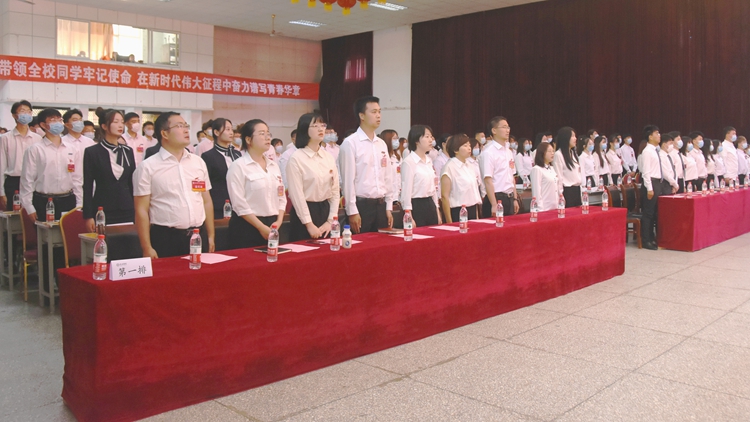彭虎軍代表學校黨委對進一步做好青年工作提出三點要求:一要高舉習近平新時代中國特色社會主義思想偉大旗幟,深入學習貫徹習近平總書記關于青年工作的重要論述,牢記習近平總書記對青年學子的殷殷囑托,帶領廣大青年學黨史、知黨恩、跟黨走,堅定理想信念,立志成為中國特色社會主義事業的合格建設者和接班人。二要建強學生組織,積極履職盡責,充分發揮學生組織的橋梁紐帶作用和學生干部的模范帶頭作用,服務學校中心工作,團結帶領廣大青年為“一流學院”建設貢獻青春力量。三要加強學生干部隊伍建設,進一步堅定理想信念,培育高尚品格,練就過硬本領,勇于創新創造,矢志艱苦奮斗,竭誠為廣大學生辦實事、辦好事、解難事,推動我校青年工作開創新局面。