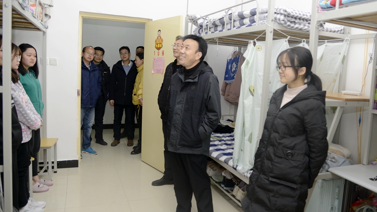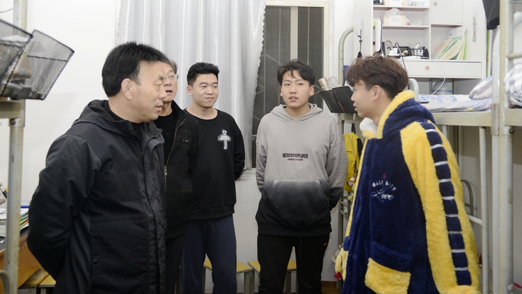 檢查中,彭虎軍詳細(xì)查看了公寓出入學(xué)生登記冊、輔導(dǎo)員進樓走訪工作臺賬及輔導(dǎo)員值班安排表,并就公寓管理、宿舍文明、宿舍衛(wèi)生、學(xué)生教育管理等工作與宿管員及值班輔導(dǎo)員進行了深入交流。在學(xué)生宿舍,彭虎軍仔細(xì)查看了宿舍環(huán)境、設(shè)施安全及衛(wèi)生情況,與學(xué)生們親切交談,詢問他們學(xué)習(xí)生活中的困難和需求、就業(yè)意向及宿舍供暖情況等,叮囑學(xué)生要提高安全意識,注意冬季用電安全,遵守公寓安全相關(guān)規(guī)定,營造良好的學(xué)習(xí)和生活環(huán)境。彭虎軍還要求相關(guān)部門及二級學(xué)院要進一步加強安全隱患排查整治工作,形成常態(tài)化工作機制,解決好突出問題,充分保障學(xué)校安全穩(wěn)定大局,確保正常的教育教學(xué)秩序。