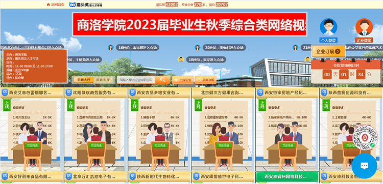 為確保本次網絡視頻雙選會的順利開展,學生處就業指導服務中心聯合貓頭英招聘平臺,積極開展會前宣傳,同時充分聯系、積極動員學校“訪企拓崗促就業”專項行動落實的優質就業創業基地入網參會,確保用人單位資質過硬、提供崗位優質有效。學生處先后通過學校官網、官微,就業指導服務中心官微積極向畢業生宣傳招聘會參會方式。招聘會開始后,各二級學院畢業班輔導員通過一對一聯系的方式,為在校和居家學生提供參會求職指導與服務。