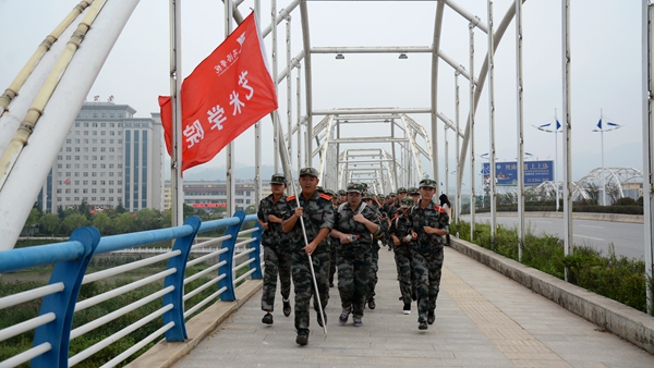 9月15日,我校2017級新生順利完成了十公里行軍拉練軍訓科目。上午8:30,新生們身著迷彩服,從學校操場出發,沿北新街、江濱大道、商鞅大道、比亞迪大道步行抵達丹江校區并返回。抵達丹江校區后,化材學院新生參觀了我校陜西省尾礦資源綜合利用重點實驗室。