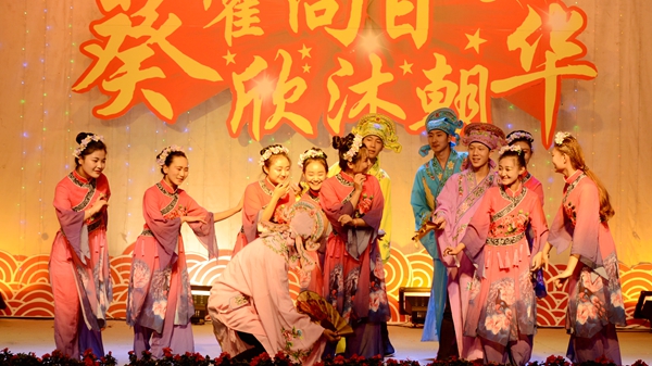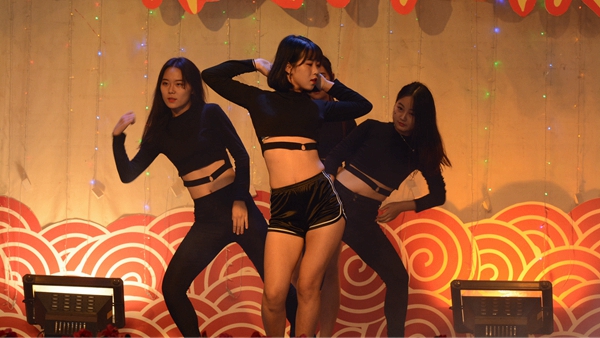 我校藝術學院教師潘勛、蘇軍、王娜娜、王怡等帶來的歌伴舞《陽光路上》把整場晚會推向高潮。晚會在觀眾意猶未盡的贊美聲中完美謝幕。