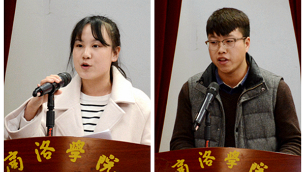 建工學院魏爭強同學、馬克思主義學院林何夢同學分別代表受表彰的先進個人和受資助學生作了發言。
