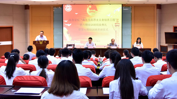 6月6日,我校舉行“青年馬克思主義者培養工程”第六期培訓班結業典禮暨第七期培訓班開班儀式,校黨委副書記彭虎軍出席。學工部、校團委等部門負責人,各二級學院團總支書記,“青馬班”第六、七期學員與學生代表參加了儀式。儀式由團委書記蔣正治主持。