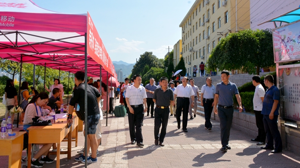 校領(lǐng)導(dǎo)先后到新生報(bào)到接待處、交費(fèi)處、綠色通道、生源地助學(xué)貸款辦理處、臥具發(fā)放處、軍訓(xùn)服裝發(fā)放處、銀行卡與通信卡辦理處等迎新接待場點(diǎn),巡查新生接待工作開展情況。在各場點(diǎn),校領(lǐng)導(dǎo)仔細(xì)了解報(bào)到情況,查看工作是否落實(shí)到位,要求相關(guān)職能部門和各學(xué)院要各盡其責(zé)、通力合作、注重細(xì)節(jié),扎實(shí)做好新生報(bào)到工作,全力以赴為新生和家長提供優(yōu)質(zhì)服務(wù),讓新生及家長走進(jìn)校園就能迅速、便捷、舒心地辦理好入校手續(xù),感受到商洛學(xué)院大家庭的溫暖。校領(lǐng)導(dǎo)還深入學(xué)生宿舍與遠(yuǎn)道而來的新生及家長親切交談,關(guān)心他們的飲食住行,并向他們介紹了學(xué)校的相關(guān)情況。