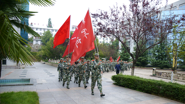 9月14日,我校2018級新生順利完成了十公里行軍拉練軍訓科目。上午8:20,新生們身著迷彩服,從北新街校區出發,沿江濱大道、商鞅大道、比亞迪大道步行抵達丹江校區并返回,在此期間,黨委副書記彭虎軍,全體軍訓教官,學生處、后勤保衛處、各二級學院相關負責人跟隨拉練全程,為同學們保駕護航。