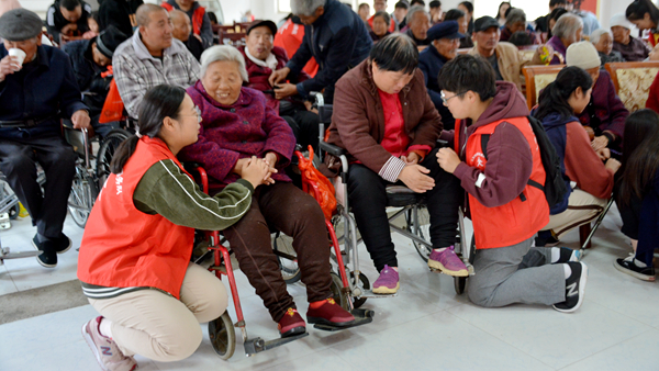 為傳承中華民族尊老愛(ài)老的傳統(tǒng)美德,弘揚(yáng)“奉獻(xiàn)、友愛(ài)、互助、進(jìn)步”的志愿精神,10月14日,在重陽(yáng)節(jié)即將來(lái)臨之際,校團(tuán)委和商洛市慈善協(xié)會(huì)組織我校青年志愿者協(xié)會(huì)、馬克思主義學(xué)院志愿服務(wù)隊(duì)百余名志愿者赴百順山莊老年公寓開(kāi)展“九九重陽(yáng)節(jié) 濃濃敬老情”志愿服務(wù)活動(dòng)。志愿者們幾人一組,攙扶老人下樓散心,幫他們推輪椅,陪他們聊天、講笑話、唱歌,為他們包餃子,叮囑他們照顧好身體,并貼心送上暖手寶,讓他們感受到更多來(lái)自社會(huì)和青年人的溫暖與關(guān)懷。志愿者們還精心準(zhǔn)備了《雙截棍》《拍拍操》《漢服舞》《映山紅》等文藝表演,為老人們帶去歡笑與快樂(lè)。公寓的老人們也動(dòng)情地演唱了紅歌,幸福之情溢于言表。溫暖人心的志愿活動(dòng)展現(xiàn)了我校學(xué)子尊老愛(ài)老的道德品質(zhì),增強(qiáng)了新時(shí)代青年人孝老愛(ài)親的內(nèi)在自覺(jué),堅(jiān)定了青年志愿者們持之以恒尊老助老的信念決心。