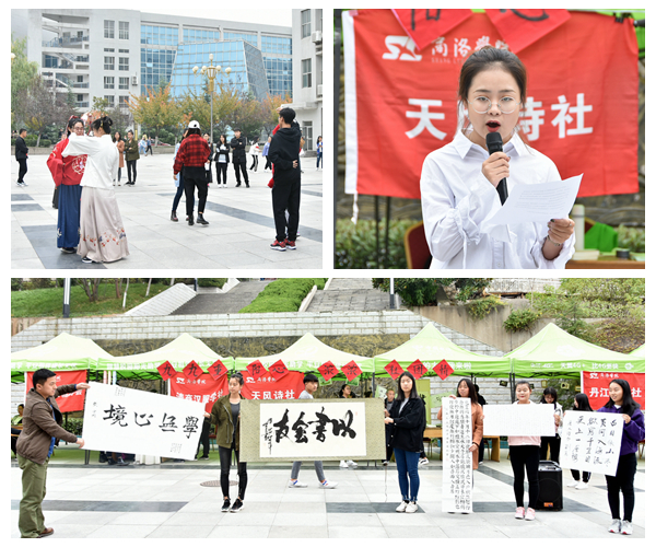 舉行“九九重陽心濃濃社團(tuán)情”文藝演出。清商漢服學(xué)社、書畫協(xié)會(huì)、丹江文學(xué)社等社團(tuán)在學(xué)校一號(hào)教學(xué)樓后的玉蘭廣場(chǎng)表演了精彩的文藝節(jié)目,以“文”“舞”結(jié)合演繹中國(guó)傳統(tǒng)文化的絢爛多彩,為重陽佳節(jié)增彩助興,吸引了眾多師生駐足欣賞。活動(dòng)現(xiàn)場(chǎng),漢服愛好者以靈動(dòng)曼妙之姿將漢服之美、民族經(jīng)典演繹的淋漓盡致;天風(fēng)詩(shī)社成員現(xiàn)場(chǎng)解讀詞作《阮郎歸》,聲情并茂、情真意切地展現(xiàn)了中華詩(shī)詞的優(yōu)美雅致;書法表演者以行云流水的筆法,與觀眾一同品味書法墨香、傳承經(jīng)典文化。