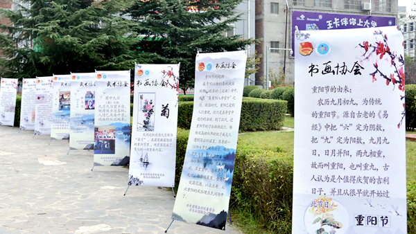 舉辦“禮樂重陽 薪火相傳”傳統(tǒng)文化藝術(shù)展。校團(tuán)委精心制作20多幅海報(bào),于重陽節(jié)當(dāng)天在一號(hào)教學(xué)樓前展出,展覽圍繞重陽節(jié)的由來、起源、習(xí)俗、相關(guān)詩(shī)詞等方面,詳細(xì)介紹了重陽節(jié)的歷史與文化內(nèi)涵,激發(fā)了當(dāng)代大學(xué)生對(duì)傳統(tǒng)文化的熱情,營(yíng)造了尊老敬老、歡度重陽佳節(jié)的校園文化氛圍,受到了師生的歡迎。