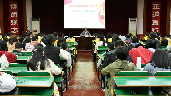 ——召開“弘揚愛國奮斗精神 建立業新時代”座談會。校團委組織青馬班學員以及校、院兩級學生干部召開“弘揚愛國奮斗精神 建功立業新時代”專題座談會。會上,大家以傳揚“西遷精神”為核心,展開深入學習和交流探討,一致認為,新時代青年要結合自身實際,把“西遷精神”融入到日常工作中,把腳踏實地、埋頭苦干、不畏艱難、無私奉獻的優秀品質內化為自強不息、奮勇前行的強大精神動力,為國家富強與民族振興作出自己的貢獻。