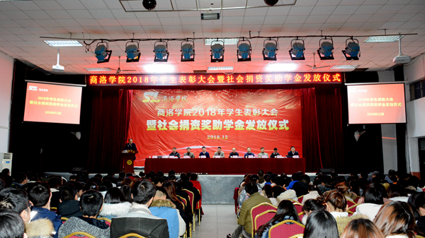 12月12日,我校舉行2018年學生表彰大會暨社會捐資獎助學金發放儀式。校長范新會、黨委副書記彭虎軍,國網陜西省電力公司商洛供電公司黨委書記陳飛、中國移動商洛分公司總經理王穎、中國電信商洛分公司總經理范圳、中國郵政商洛市分公司調研員王林、中國聯通商洛市分公司副總經理陳安民、陜西森弗天然制品有限公司黨支部書記杜永茂、廣東校友基金會副會長徐吉印等出席大會。大會由學工部部長石啟英主持。