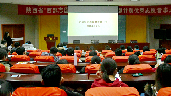 為響應(yīng)團(tuán)省委和陜西省大學(xué)生志愿服務(wù)西部計(jì)劃的號(hào)召,引導(dǎo)廣大青年積極投身基層實(shí)踐,12月18日,陜西省西部計(jì)劃優(yōu)秀志愿者事跡分享團(tuán)走進(jìn)我校,舉辦“西部志愿行 奉獻(xiàn)新時(shí)代”分享報(bào)告會(huì)。西部計(jì)劃優(yōu)秀志愿者代表陳夢(mèng)穎、馬吉祿、王文超、胡倩蕓、楊坤,研究生支教代表團(tuán)成員田蕾、柏香怡參加報(bào)告會(huì)。我校各二級(jí)學(xué)院師生代表及部分志愿者聽(tīng)取了報(bào)告。