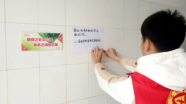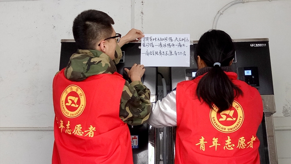 青年志愿者協會開展“珍惜水資源,為生命留一條清流”活動。活動中,志愿者們分別在教學樓各處飲水機、宿舍樓水龍頭旁張貼珍惜水資源的愛心標語,倡導師生們節水愛水,保護我們賴以生存的水資源。