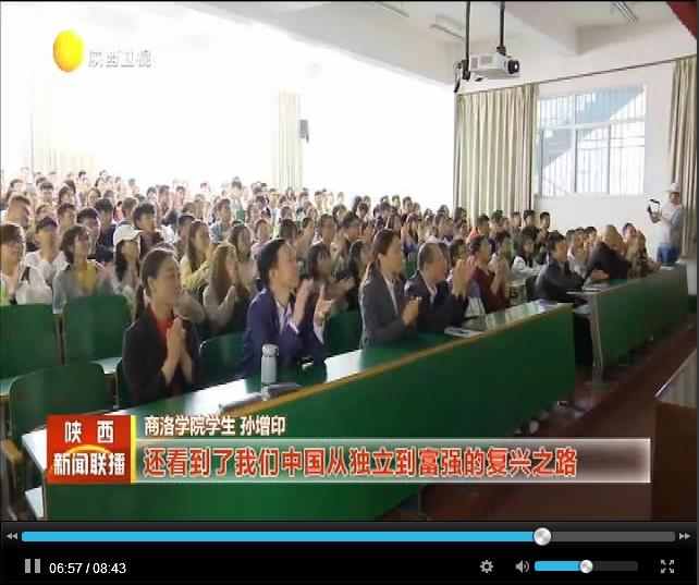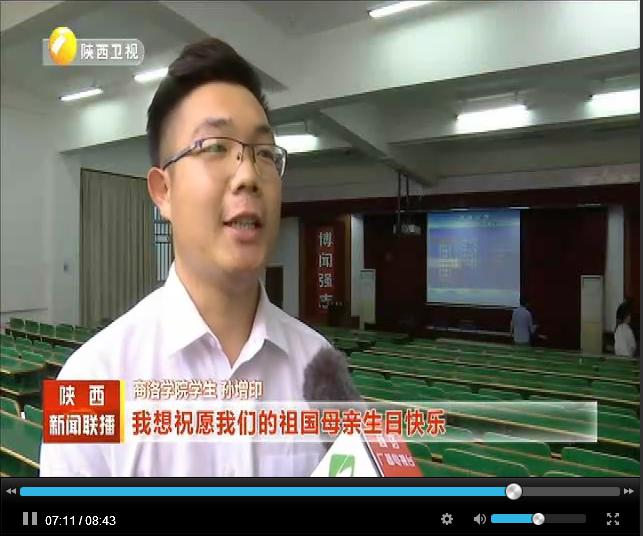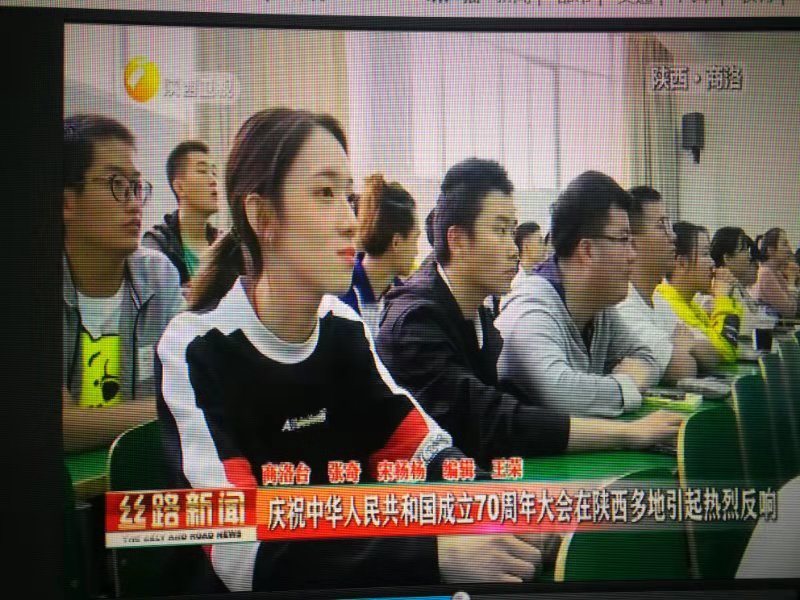 陜西電視臺《陜西新聞聯播》《絲路新聞》頻道于10月3日,商洛電視臺《商洛新聞聯播》頻道于10月1日,分別對我校師生集體收看慶祝中華人民共和國成立70周年大會、閱兵式、群眾游行直播情況進行了報道。收看現場,師生們激情澎湃,教室里不時響起熱烈掌聲,大家都為祖國的日益強大感到無比振奮和自豪。節目組現場采訪了我校黨委副書記彭虎軍、學生許文佳和孫增印。彭虎軍說:今天是祖國母親70歲生日,內心非常高興,也非常激動,剛才聆聽了習近平總書記的重要講話,覺得很受鼓舞,堅定了信心,催人奮進。許文佳說:給我印象最深刻的是飛機的表演,我們已經不是當時剛開國典禮時僅存的那幾個飛機,我們現在有高科技的軍事裝備,我們的國家也越來越強大,在世界上展示著大國的風采。孫增印說:在這個特殊的日子,我想祝愿我們的祖國母親生日快樂,祝愿我們的國家更加繁榮昌盛。