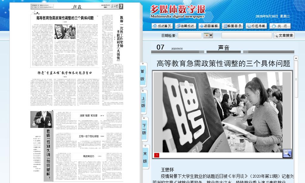 陜西高校教學名師、商洛市名師、我校馬克思主義學院教授王思懷在《教師報》2020年9月30日理論版面頭條位置發表署名文章,直面高等教育就業率、獎助學金、學業縮水問題,全文如下: