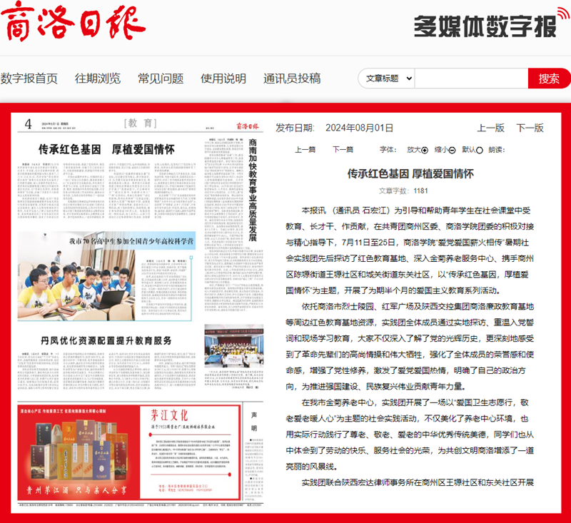 商洛日報:傳承紅色基因 厚植愛國情懷