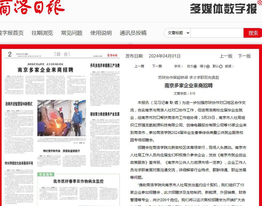 商洛日報:南京多家企業來商招聘