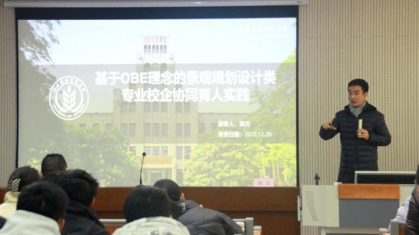 高天教授結合自身從事(風景)園林專業教學和科研實踐,分別以《基于OBE理念的景觀規劃設計類專業校企協同育人實踐》《跨學科研究引領(風景)園林學科發展》為題,為師生們作了兩場精彩的報告。他結合教學團隊長期的教學改革實踐和所取得的成果,從獨特視角剖析了基于OBE理念的園林專業人才培養模式,并詳細介紹了園林專業校企協同育人合作方式,基于項目落地的過程考核,科創項目和學科競賽準備及參賽要點等。針對園林專業師生科研課題選擇問題,提出圍繞一種植物、針對一個點的T字型研究思路,并結合生態文明建設和鄉村振興分析了(風景)園林學科研究熱點問題,激發了學生專業興趣。