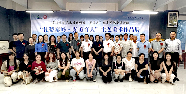 6月19日,藝術學院、洛南縣文學藝術界聯合會、商花溪弄景區共同策劃主辦,由秦嶺畫派研究中心、洛南縣美術家協會、陜西山水畫研究會商洛分會承辦的根植花溪弄服務系列活動“禮贊秦嶺·弘美育人”主題美術作品展在洛南縣花溪美術館開幕。展覽共計展出作品70幅,其中教師示范作品9幅,學生創作作品13幅,《秦嶺山水寫生》課程實踐成果作品48幅。