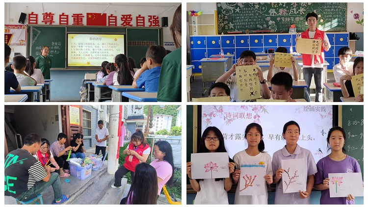 本次活動中,人文學院“領航青年宣講團”圍繞普通話知識科普、親情陪伴、素質拓展等主題精心設計了一系列豐富多彩的科教文體活動,通過趣味游戲、詩歌朗誦、書法訓練、手工制作、舞蹈排演等形式,讓孩子們在輕松愉快的氛圍中收獲了知識、拓展了眼界,播下了夢想的種子。活動中,宣講團還向米糧鎮中心小學和清泉村捐贈圖書400余冊,向參會群眾發放了由宣講團精心設計的編織袋、手工折扇等禮品,并組織孩子們體驗了漆扇的制作過程。