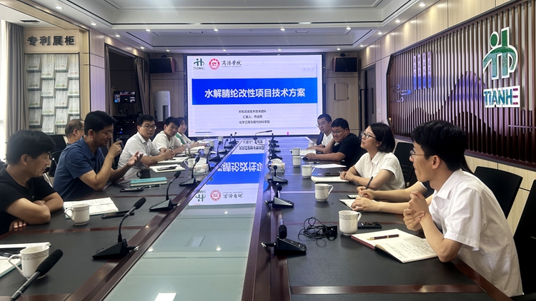 博士服務(wù)團隊成員龔偉副教授以“水解腈綸的前世今生”為主題,從腈綸的定義、腈綸的來源、腈綸的水解方式等方面為企業(yè)的生產(chǎn)技術(shù)團隊做了科普報告。喬成芳教授從聚丙烯腈水解產(chǎn)物分析檢測、水解聚丙烯腈銨鹽類產(chǎn)品工藝的優(yōu)化,水解聚丙烯腈的高質(zhì)利用等方面做了技術(shù)報告。