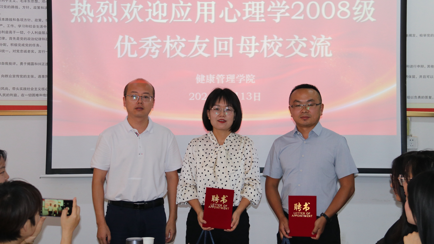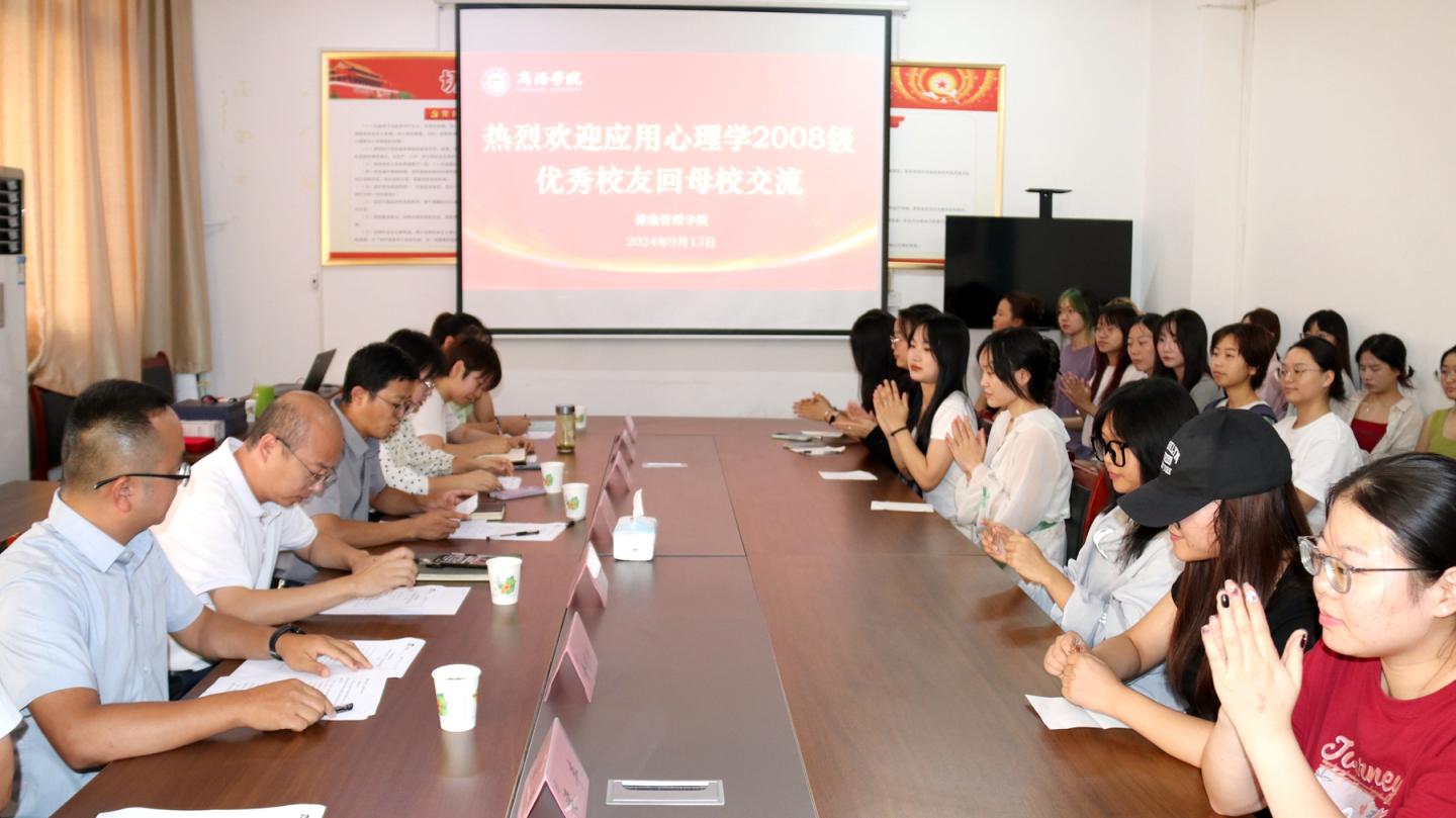 為進(jìn)一步做好2025屆畢業(yè)生就業(yè)工作,9月13日,健康管理學(xué)院邀請(qǐng)府谷縣華陽九年制學(xué)校骨干教師石小潔和陜西盛潤(rùn)興合工貿(mào)有限公司總經(jīng)理黃明珠兩位08級(jí)應(yīng)用心理學(xué)專業(yè)優(yōu)秀校友回校,參加“優(yōu)秀校友面對(duì)面”就業(yè)指導(dǎo)座談會(huì),與畢業(yè)生一起分享求職創(chuàng)業(yè)經(jīng)歷及工作感悟,為畢業(yè)生就業(yè)提供指導(dǎo)和幫助。學(xué)院黨委書記王攀、黨委副書記楊憲華、心理系相關(guān)教師、輔導(dǎo)員及應(yīng)用心理學(xué)2025屆全體學(xué)生參加座談會(huì)。