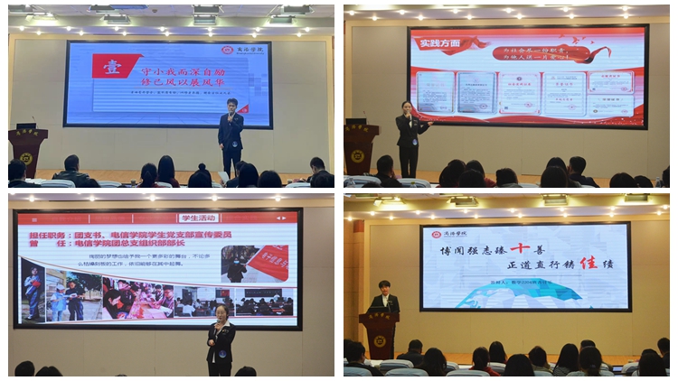 團委書記王姍、教務處副處長王欣分別對初評對象的出色表現給予了充分肯定,結合各個初評對象的展示內容進行了點評,并鼓勵大家要繼續發揮榜樣作用,激勵和帶動更多同學不斷完善自我、勇于創新,努力成為更優秀的自己。