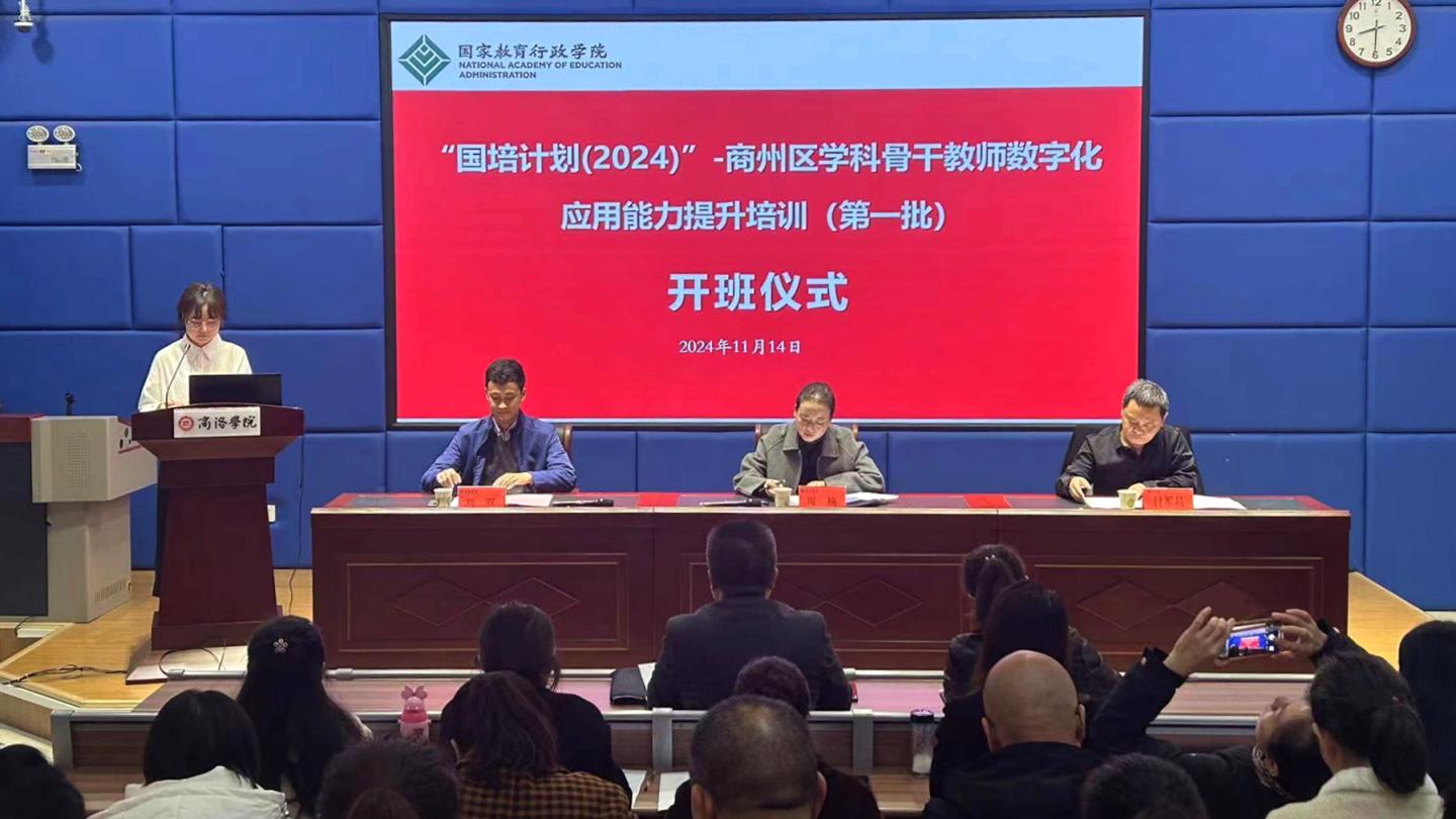 11月14日,由國家教育行政學(xué)院主辦、我校協(xié)辦的“國培計(jì)劃(2024)”商州區(qū)學(xué)科骨干教師數(shù)字化應(yīng)用能力提升培訓(xùn)班舉行開班儀式。商州區(qū)教體局黨組成員副局長周楠、我校繼續(xù)教育學(xué)院院長付軍昌、國家教育行政學(xué)院陜西國培項(xiàng)目負(fù)責(zé)人劉雙與來自全區(qū)180余名學(xué)科骨干教師參加儀式。儀式由國家教育行政學(xué)院工作人員、本期培訓(xùn)班班主任白雪主持。