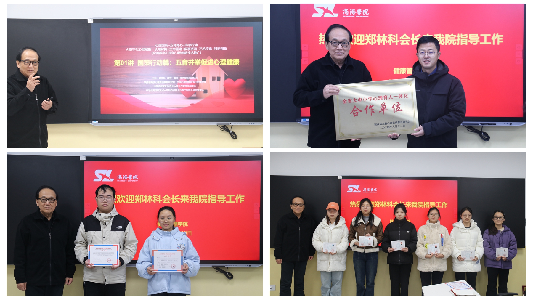 鄭林科代表研究會為學院頒發“全省大中小心理育人一體化合作單位”和“西安心理AI研究中心協作單位”牌匾,并為學院考取注冊心理師的學生代表頒發證書,為在研究會組織開展的研究項目中獲得立項的學生頒發立項證書。