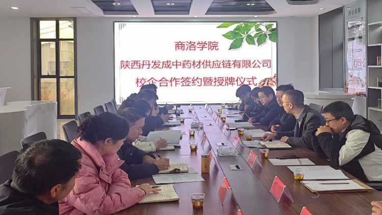 12月6日,生物醫藥與食品工程學院黨委書記楊力、院長趙永平帶領科研團隊一行9人赴陜西省丹發成中藥材供應鏈有限公司洽談合作,簽訂校企合作戰略協議。