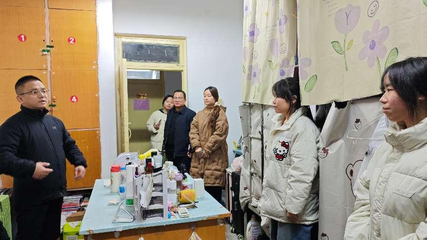 新學期伊始,2月23日晚,藝術學院黨委書記廉明及全體輔導員深入學生宿舍調研走訪,了解學生的開學準備情況。
