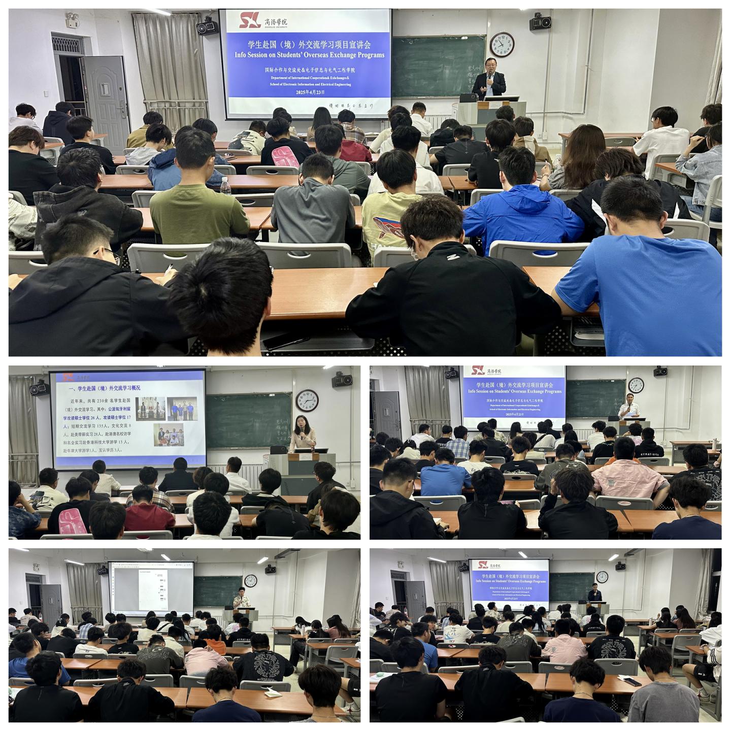 4月23日,電信學(xué)院聯(lián)合國(guó)際合作與交流處共同舉辦學(xué)生赴國(guó)(境)外交流學(xué)習(xí)項(xiàng)目宣講會(huì)。電信學(xué)院黨委書(shū)記袁訓(xùn)鋒、國(guó)際合作與交流處外事辦公室主任楊嬌、全體輔導(dǎo)員及電氣工程及其自動(dòng)化(中外合作辦學(xué))專業(yè)2023、2024級(jí)全體學(xué)生共計(jì)240余人參加活動(dòng)。