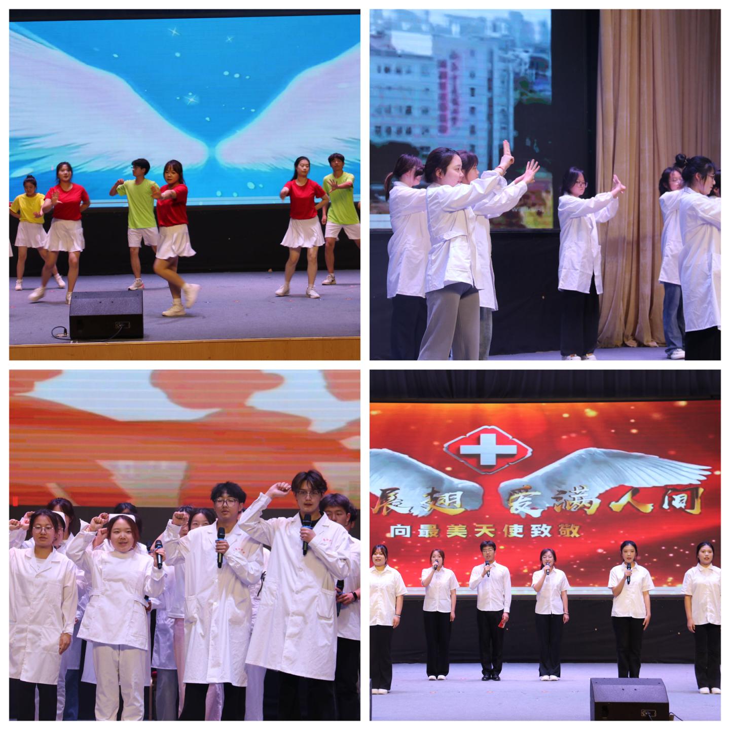 學(xué)生們用熱情洋溢的舞蹈《青春有你》展現(xiàn)了青春的活力與風(fēng)采;《健康守護(hù)操》將心肺復(fù)蘇操和洗手舞巧妙結(jié)合,傳遞了健康守護(hù)的理念;歌曲《一路生花》用優(yōu)美的旋律和動(dòng)人的歌詞,表達(dá)了對護(hù)理事業(yè)的贊美;情景劇《平凡中的堅(jiān)守》通過生動(dòng)的表演,展現(xiàn)了護(hù)理人員在平凡崗位上的堅(jiān)守與奉獻(xiàn);朗誦《大醫(yī)精誠,大愛無疆》更是將活動(dòng)推向了高潮,學(xué)生們用激昂的朗誦表達(dá)了對護(hù)理事業(yè)的崇高敬意和對未來的美好憧憬。最后,一首《孤勇者》為整場晚會(huì)畫上了圓滿的句號(hào)。