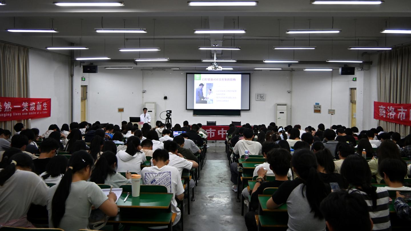 為普及口腔健康知識(shí),增強(qiáng)師生口腔保健意識(shí),5月14日下午,校醫(yī)院邀請(qǐng)商洛市中心醫(yī)院口腔科主任李阿峰團(tuán)隊(duì)來(lái)校,以“健康口腔,微笑同行”為主題通過線下線上方式開展口腔健康專題講座。校醫(yī)院工作人員,23級(jí)、24級(jí)各班學(xué)生代表共計(jì)400余人參加了講座。校醫(yī)院院長(zhǎng)任秀梅主持講座。