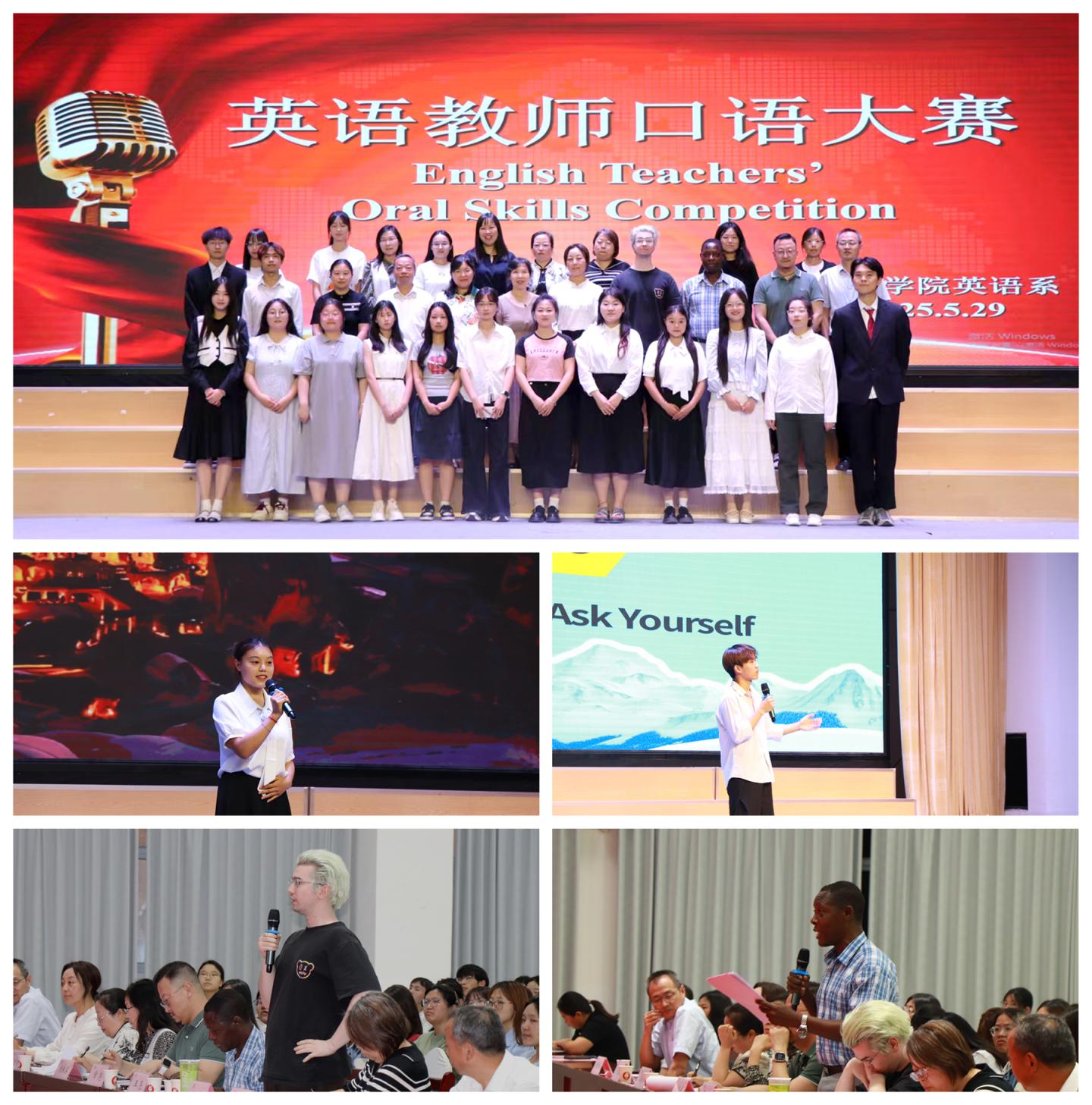 5月29日,人文學院舉辦“未來教師,口語先行”第二屆英語口語大賽。學院黨委書記劉麥霞、副院長張建軍、英語系全體師生參加了本次比賽。3名外籍教師及英語系相關教師受邀擔任此次大賽評委,共同見證14名參賽選手的精彩表現。