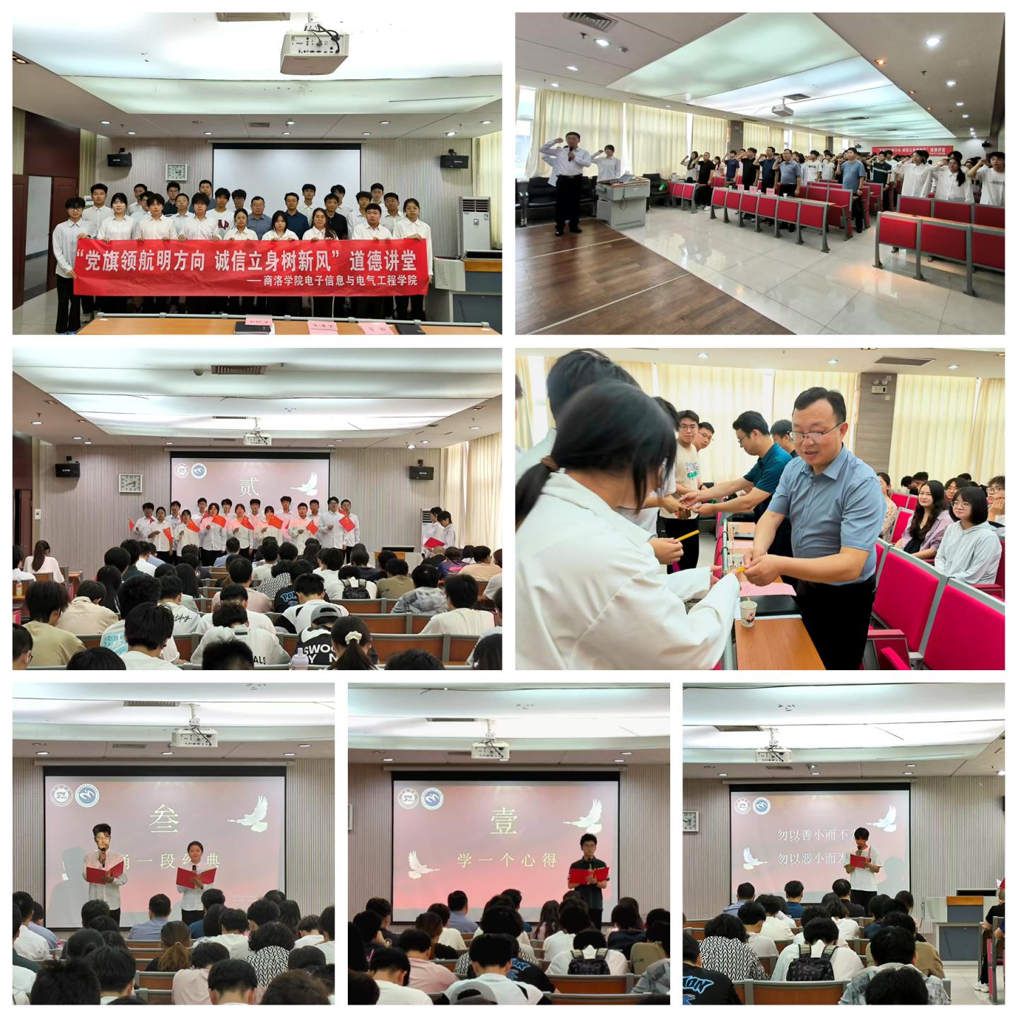 為弘揚誠信美德,筑牢理想信念根基,6月18日,電信學院舉辦“黨旗領航明方向 誠信立身樹新風”主題道德講堂活動。校黨委委員、宣傳部部長王霄飛,電信學院黨委書記袁訓鋒、院長陳垚,學院全體黨支部書記、輔導員、學生代表170余人參加活動。