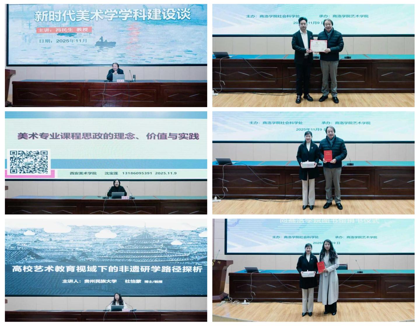 11月9日上午,陜西師范大學美術學院博士生導師馮民生教授、西安美術學院馬克思主義學院沈寶蓮教授和貴州民族大學美術學院碩士生導師杜怡蒙教授應邀為秦嶺學論壇作專題學術報告,圍繞秦嶺地域文化內涵、秦嶺畫派創作研究、學科特色凝練、課程思政實施路徑以及非遺傳承創新等議題展開深入探討。藝術學院相關負責人、全體教師及美術學專業學生300余人現場聆聽了專家報告會。