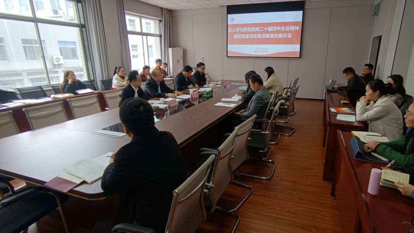 11月12日下午,藝術學院召開專題座談會,深入學習貫徹黨的二十屆四中全會精神,圍繞推動黨建與業務深度融合開展交流研討,并就下一步工作進行部署。副校長郭瑾出席會議并講話。學院相關負責人及全體教職工參加座談會。