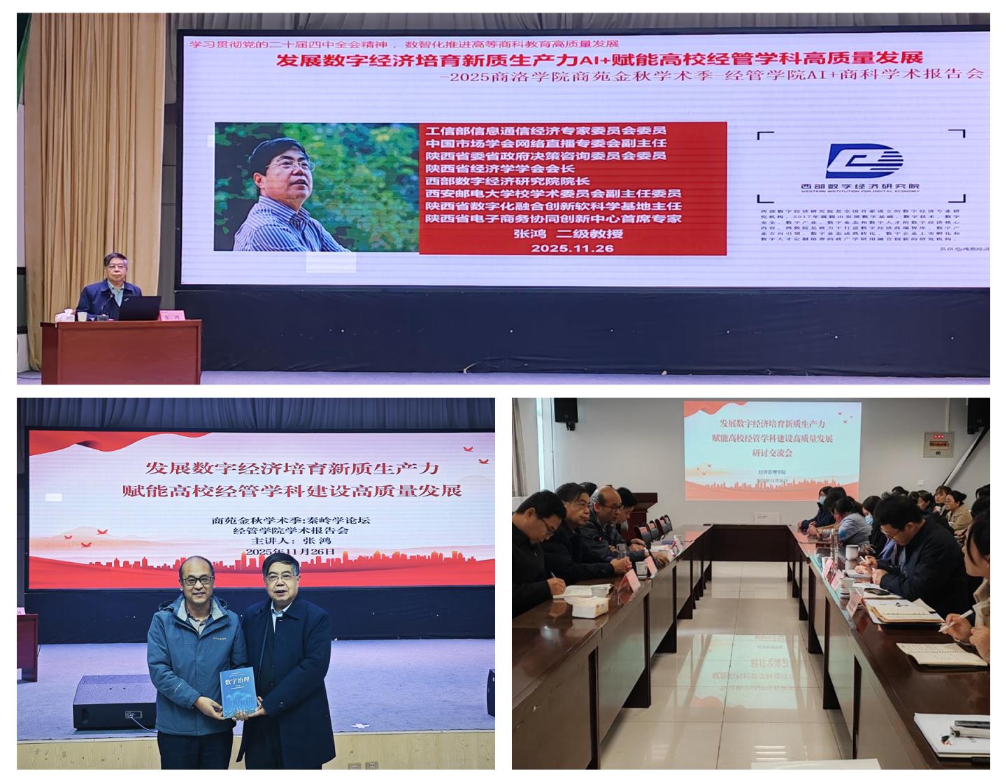 11月26日,經濟管理學院在大學生活動中心舉辦專題學術報告會,西安郵電大學張鴻教授應邀為學院師生作《發展數字經濟培育新質生產力賦能高校經管學科建設高質量發展》專題報告。學院班子成員、全院教職工及2025級全體學生參加了報告會。
