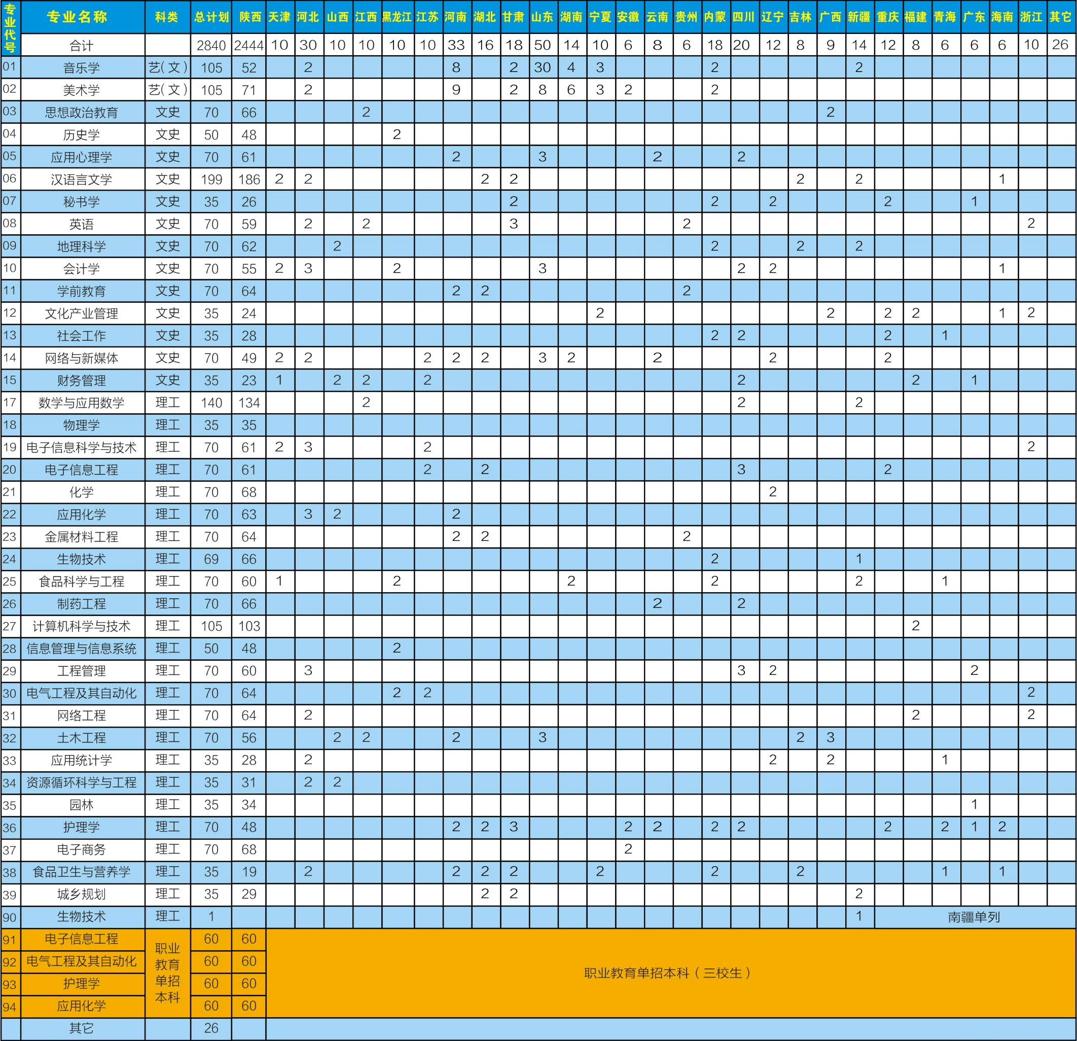2018年商洛學院38個本科專業面向全國28個省(直轄市、自治區)計劃錄取2840名優秀學子。